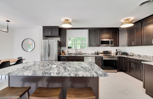 Elevate your stay in the Poconos at Paradise, a newly renovated 3,000 square foot retreat nestled on 1.5 acres. This modern home features a private in-ground pool, a spacious 8-person hot tub, and a game room, ensuring endless fun and relaxation for up to 10 guests.
