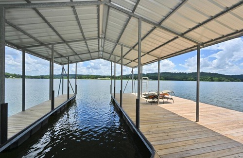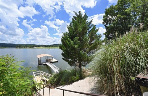 Best place on the lake to view the fireworks. Relax at the lake while the kids swim off the boat dock with your personal boat sitting ready to use in the slip or just enjoy the sunshine on the large sunning area. Enjoy the views of the lake off the large deck great for entertaining while you are grilling and chilling. You will have everything you need to enjoy a peaceful time on the lake from fully appointed kitchen to high-speed cable internet. Enjoy fishing from the floating dock, sit by the fire pit, or relax and watch the sunset.