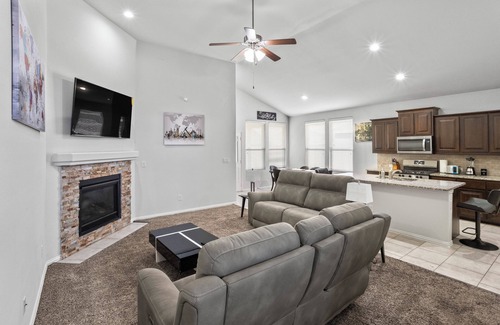 With the convenience of 8 queen beds and 2 full-size bath rooms spread across 4 bedrooms, this home away from home offers a comfortable stay for guests.