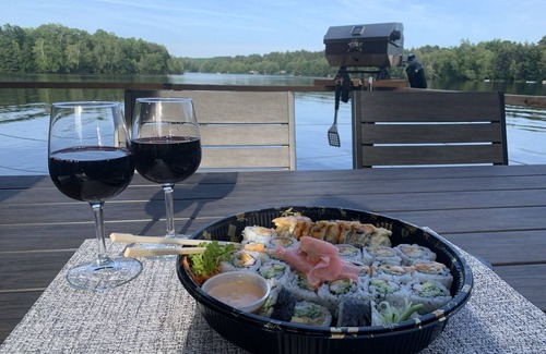 FLOATING ACCOMMODATION STUDIO offers a unique, upscale accommodation experience in floating homes. A paddleboarding paradise, you have access to activities such as boat tours, cycling, obstacle courses, forest aerial courses, fishing, kayaking, canoeing, walking trails, and much more. New: There are now water games nearby. Directly adjacent to the Cité de l’énergie, the site is also 25 minutes from Parc de la Mauricie. CITQ: 308651. Can sleep up to 6 people (Queen bed and Sofa bed with bedding and a double floor mattress for the 5th and 6th person without bedding). Please check for activity availability and whether they are paid or free.