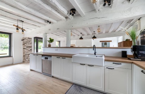 Featuring a garden, Parenthèse en Brocéliande features accommodations in Paimpont. This property offers access to a terrace, free private parking, and free Wifi. Outdoor seating is also available at the vacation home. The air-conditioned vacation home consists of 7 bedrooms, a living room, a fully equipped kitchen with a dishwasher and a kettle, and 5 bathrooms with a bath and a hair dryer. Towels and bed linen are offered in the vacation home. There's also a seating area and a fireplace. Parc Expo Rennes is 21 miles from Parenthèse en Brocéliande, while Roazhon Park is 22 miles from the property. Rennes–Saint-Jacques Airport is 21 miles away.