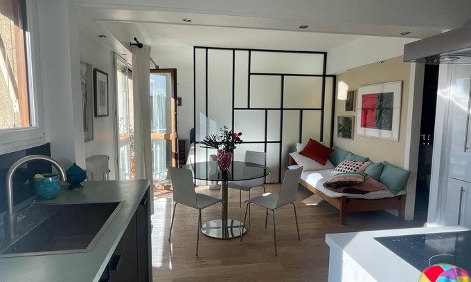 The apartement is in the south of Paris, near Porte de Versailles, where many competitions will take place. It is ideal for a couple who wants to discover Paris. It was recently redesigned by an architect and is located 10 minutes walk from the RER Denfert Rochereau and bus, which is convenient for reaching Charles de Gaulles or Orly airports. Metro lines 4 and 6 serve the main historic sites. And, if you prefer to walk, you are a 15-minutes walk to Montparnasse, very close to the catacombs, Parc Montsouris and the Cartier foundation. The quartier latin is not far away.