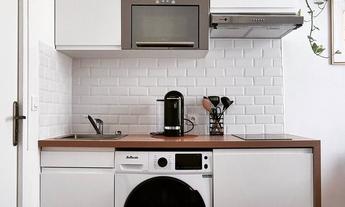 The kitchen is equipped with a stovetop and a refrigerator, as well as a coffee maker, an electric kettle, and a microwave. Bathroom amenities include a hair dryer, towels, and toilet paper. And you can even travel light because you'll have access to laundry facilities. Other amenities at this 1-bedroom, 1-bathroom rental include a sofa bed, bed sheets, an ironing board, and heating.