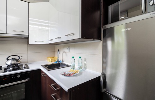 Park Źródliska Spacious Apartment features a living room with a sofa bed, two separate bedrooms with single beds, a kitchen, a bathroom, and a spacious balcony where guests can relax with a morning coffee or an evening glass of wine. Guests have access to a variety of amenities, including free WiFi, a TV, a washing machine, an iron, a hairdryer, a dishwasher, an oven, a microwave, a fridge with freezer, a kettle, and kitchenware. Guests can also use the public outdoor parking near the building, with no guarantee of available spaces.