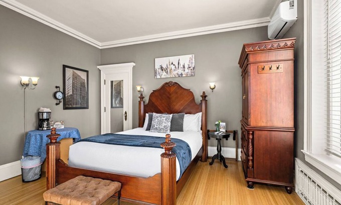 Venture out of your private space and head over to the main house to enjoy the shared living areas including the Living Room where you can relax in front of the massive Alabaster fireplace in comfortable furniture with a cup of coffee or a late afternoon glass of wine. This room boasts 15 ft. high beamed ceilings, original wall sconces and Russian Circadian White Oak Floors, a Grand Piano, and Chess Nook. Challenge your partner to a game! Grab a book and put your feet up in the library where you can let your imagination take you back in time to Joseph Cotton's Library and law office where the legal roots of Duluth's iron ore industry and US Steel were forged. This impressive room features a magnificent black marble fireplace, leather furniture, and black fumed woodwork. Books and artwork are for your enjoyment. There are so many beautiful spaces for you to enjoy you may just find yourselves staying in for your vacation.