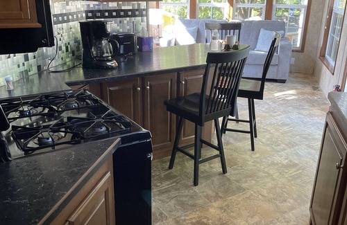 Enjoy an updated park model with access to 5 lakes via own pier space available and water front dining. You can relax at the outdoor patio area while enjoying the views from the top of the hill. There are private steps leading down to a wonderful restaurant and tiki bar. The park model comes fully furnished and can sleep up to 6-8 people with 1 bedroom queen bed, queen sleeper sofa in the living room and upstairs loft that has sleeping for several. The kitchen living room is a great open concept with views of the lake.