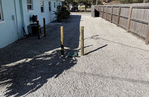 You will be sharing the common area with the guests of the four pet friendly, spacious, clean, 2 BD /1 BA apartments that are also located on the property. The grounds are landscaped, with plenty of seating consisting of a large picnic table, chaise lounges, tables, and chairs that make it perfect for relaxing while visiting with friends and family, catching some rays, or grilling out. There is a large oak tree that provides lots of shade for when you want to kick back and relax.