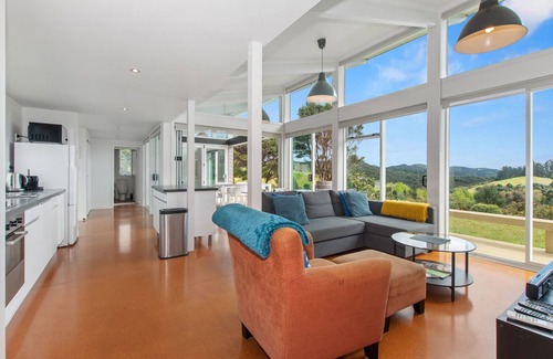This delightful rural treasure is nestled in the picturesque far north countryside, just 15 minutes from Russell. Modern and minimalist styling is complemented by continuous views of a lush green backdrop, offering idyllic views from sunrise to sunset.