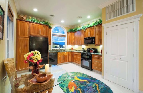 Welcome to Parrot-ise, a meticulously crafted luxury villa tucked away in laid-back Cayman Kai.