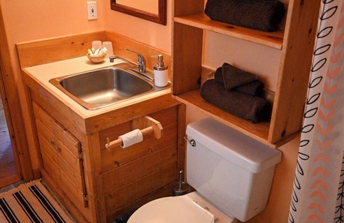The Cabin is private for its guests and has a locked door with a personalized code. Linens and amenities are provided for guest comfort. A shared sauna space is available in the main lodge for guest use, perfect for apres ski relaxation!