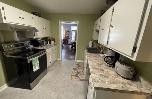 This house is situated behind the Owners Occupied property with its entrance at the end of the driveway. It is only 1 mile north west from Bryant Denny Stadium! The home has 2 bedrooms and 1 bathroom and can sleep 6 guests. There is a full kitchen with all the appliances and utensils you will need to create a home cooked meal or maybe just some game day treats! The first bedroom has a queen bed. The second bedroom has 2 twin beds and an attached bathroom with a walk in shower. A queen sized sleeper sofa can also be set up if additional guests are staying.