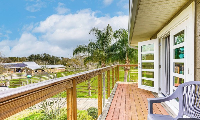 No matter what brings you to town, you'll feel right at home at this apartment in Lutz. Perfect for outdoor lovers, equestrians, or anyone seeking a tranquil escape, this 2-bed, 1-bath vacation rental provides easy access to Tampa’s attractions while offering a relaxing haven away from the city’s hustle. Wake up to the gentle sounds of nature, enjoy sunsets on the balcony, and experience the beauty of farm life up close!