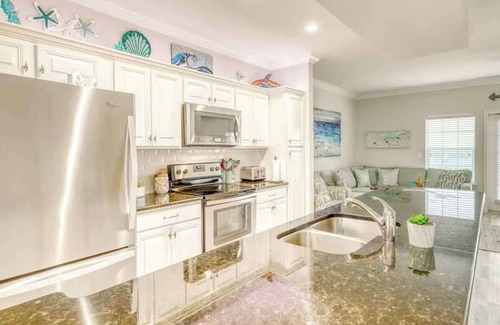 Beautifully furnished and filled with clean grey and tan and white touches, this modern getaway will have everyone feeling right at home. Step into the spacious kitchen and you will find modern appliances and stunning countertops to prepare tasty meals with ease after a day on the sand. Before heading out each day, enjoy a cup of coffee or quick breakfast on ONE OF 3 the balconIES as you watch the sunrise over the horizon. Any downtime spent inside will be filled with entertainment as 65 x 55 flatscreen TV in the living room and mounted flatscreen TVs in each bedroom.