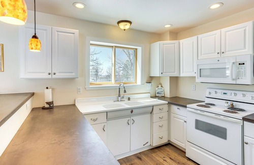 Enjoy a classic Colorado adventure with a stay on a working cattle ranch in Mancos! This 4-bedroom, 2-bath vacation rental includes a covered patio with stunning views of the La Plata Mountains, original furnishings in the updated interior, and a location that can't be beaten. Take a scenic drive to Mesa Verde National Park and explore old cliff dwellings, hike through Mancos State Park, or head downtown for dinner!