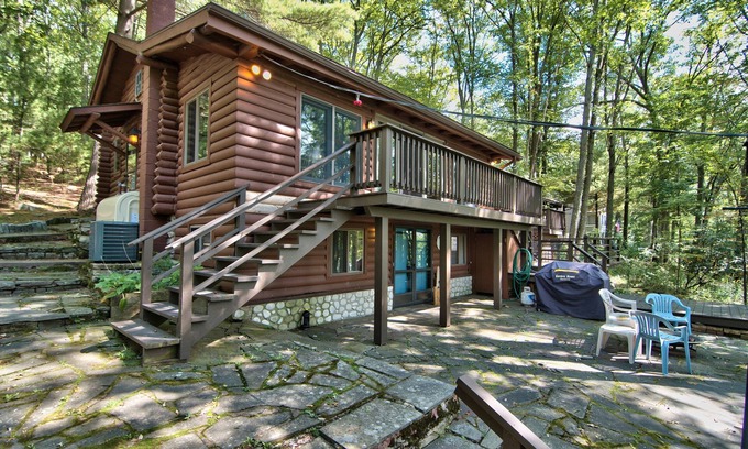 Enjoy your summer vacation here at Lake Wallenpaupack in this authentic Log Home with all the character and charm of lakefront living. Stay cool all summer with Central AC. Balconies, decks and patios surround the home to enjoy the outdoors as much as indoors. Fish off the private boat dock or just enjoy the quietness of the Paupack Point Cove. With restaurants and Hawley close by, you can enjoy the lake all day and spend the evenings out exploring different restaurants and ice cream shops.