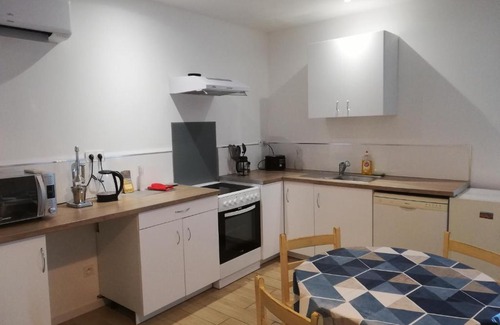 Located in Paziols, 18 km from Queribus Castle and 22 km from Peyrepertuse Castle, Paziols: Logement en rdc avec terrasse. Offers air conditioning. The property is 39 km from Peak of Bugarach and 40 km from Reserve Africaine de Sigean. The apartment comes with 2 bedrooms, 1 bathroom, bed linen, towels, a flat-screen TV, a dining area, a fully equipped kitchen, and a terrace with city views. Stade Gilbert Brutus is 35 km from the apartment, while Termes Chateau is 37 km away. The nearest airport is Perpignan - Rivesaltes Airport, 33 km from Paziols: Logement en rdc avec terrasse..