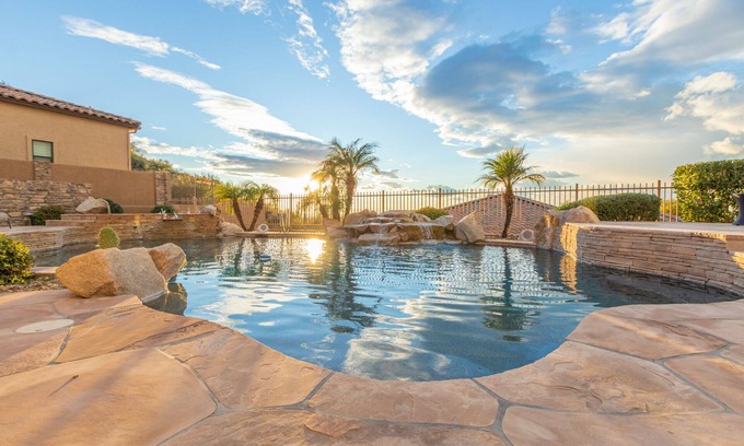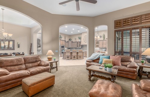 A stunning 4-bedroom home nestled in the picturesque Las Sendas neighborhood of Mesa, Arizona. This spacious retreat offers a perfect blend of luxury and comfort, accommodating up to 10 guests, making it an ideal choice for families or groups looking to unwind in a serene environment.