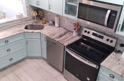 The kitchen is well appointed with everything you need for cooking a great family dinner. The dining area seats six.