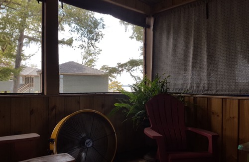 This cozy little piece of paradise is 750 sq. ft. plus a loft of 144 sq ft. There is a screened porch with a great view of the lake that is 360 sq ft.
