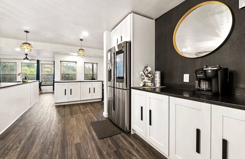 Guests will have access to the entire pictured house, all appliances, any kitchen supplies, and all amenities. We provide amenities in the bathrooms, kitchen, and laundry room with enough to get you started on your trip. We do not provide excess for more than a couple of days' worth, and guests are responsible for purchasing these items for personal use if they run out during their stay. Please note there is a ring doorbell camera for the security of the home.