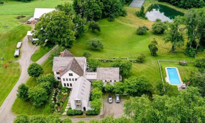 Host your family to stay at this beautiful historic farm estate. This property is nestled in the beautiful rolling hills of the hills of Vermont. This home was constructed within the last few years and features modern amenities while keeping the Vermont charm. Featuring 11+ Bedrooms, 12 bathrooms, parking for 10 cars, a in-ground pool, and pond! Bring your bags and enjoy your stay at this world-class estate.
