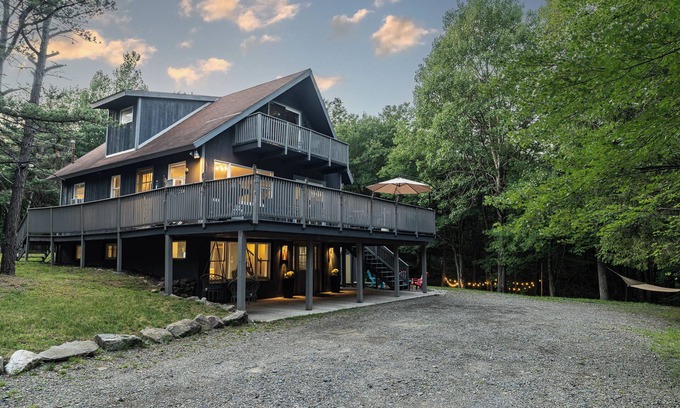 Peaceful 3-Story Chalet by a Stream Nature Escape – Poconos | Ski Chalet in Long Pond