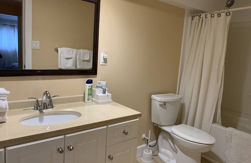 Keep it simple in this quiet residential neighborhood. Guests will enjoy private bedroom/bathroom as well as living areas in this above ground suite. All kitchen items are provided by the host. Bathrooms are stocked with shampoos, conditioners and bath products. Free parking and Wifi is included.