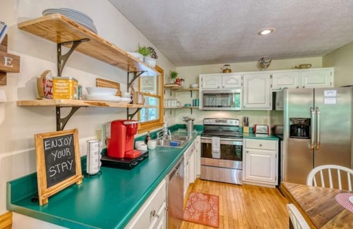 The kitchen is fully stocked with cookware and dining ware to make you feel right at home, including a Keurig coffee machine, a toaster, a blender, and an Instant Vortex Air Fryer oven. And we provide an initial supply of coffee pods, creamers, tea, trash bags, paper towels, laundry detergent pods and dishwasher pods. Longer stays or a large number of guests will need to bring extra.