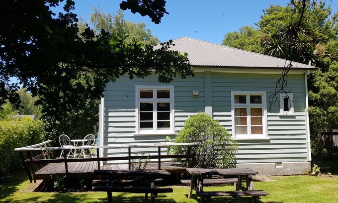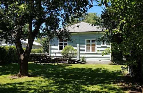 You and your family or friends will be close to everything when you stay at our peaceful yet centrally located house. It's located on one of Hanmer's oldest and most established streets and offers a quintessential Kiwi bach experience. Nestled among trees and across the road from the Hanmer Forest, the house is private and quiet but just a couple of minutes walk from the pools and village centre. The bach is full of character, comfortable and well appointed, including a full kitchen, and a log burner, heaters and electric blankets for the winter months. There is a master bedroom and a second bedroom with beds on the lower and mezzanine floors (accessible by a ladder) which ideal for children. Linen and towels are provided for guests. The property has generous gardens and lawns at the front and back of the house, offering both sun and shade.