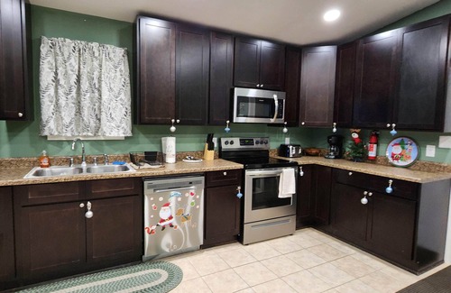 Relax with the whole family at this peaceful place to stay on 2 acres of land. Seasonal flower gardens located around the property. Newly remodeled open floorplan creates a spacious retreat.