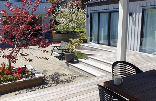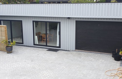 Luxurious recently-renovated detached dwelling in Waipahihi Bay, 3 minutes' walk from the lakefront and a 4 minute drive from central Taupo. Located in a quiet cul-de-sac, this apartment is brand-new as of late 2019, and is perfect for a couple looking for a relaxing getaway, plus a double sofa bed. Free off-street parking is available immediately outside, and bicycles are available to explore the area. Sunset views of the lake and mountains are visible from the front of the property and main house.