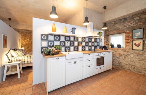 Authenticity is achieved using natural materials such as terracotta, stone and wood, while the extra-large windows and high ceilings typical of the local farmhouse enhances the Cascina charm. The outcome is an alluring eco-resort composed of 11 independent serviced apartments, featuring luxury hotel-level service, set in an idyllic natural environment and luscious gardens.