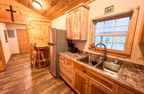 Welcome to Daisy Creek Cabins – your cozy retreat less than a mile from Daisy State Park! Enjoy nature’s tranquility with all the comforts of home, perfect for a peaceful escape or an outdoor adventure. Whether you are coming to fish, hike, diamond hunt, or ride on the many ATV trails nearby, this cabin will be the perfect place to begin and end your daily adventures! The space This cozy cabin sleeps up to 5 guests with 2 queen beds in the bedroom and a comfortable sofa in the living room. You'll find a fully furnished kitchen with everything you need to whip up meals, as well as a washer and dryer to keep things fresh during your stay. The single bathroom features a walk-in shower with all the towels you will need for your stay. Outdoor enthusiasts will love our 8-acre property with private trail access to the Bear Creek ATV trail. For boating and fishing fans, every boat ramp on the north side of Lake Greeson is just minutes away, and we offer a pull-through carport to make storing your boat or ATV a breeze. If you’re feeling adventurous, the famous Crater of Diamonds State Park is only 20 miles away, offering you the chance to dig for a real Arkansas diamond! Please note: no smoking inside, and kindly keep pets off the furniture. Book your stay at Daisy Creek Cabins for an unforgettable lake and trail adventure!