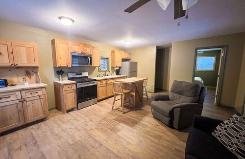 Welcome to Daisy Creek Cabins – your cozy retreat less than a mile from Daisy State Park! Enjoy nature’s tranquility with all the comforts of home, perfect for a peaceful escape or an outdoor adventure. Whether you are coming to fish, hike, diamond hunt, or ride on the many ATV trails nearby, this cabin will be the perfect place to begin and end your daily adventures! The space This cozy cabin sleeps up to 5 guests with 2 queen beds in the bedroom and a comfortable sofa in the living room. You'll find a fully furnished kitchen with everything you need to whip up meals, as well as a washer and dryer to keep things fresh during your stay. The single bathroom features a walk-in shower with all the towels you will need for your stay. Outdoor enthusiasts will love our 8-acre property with private trail access to the Bear Creek ATV trail. For boating and fishing fans, every boat ramp on the north side of Lake Greeson is just minutes away, and we offer a pull-through carport to make storing your boat or ATV a breeze. If you’re feeling adventurous, the famous Crater of Diamonds State Park is only 20 miles away, offering you the chance to dig for a real Arkansas diamond! Please note: no smoking inside, and kindly keep pets off the furniture. Book your stay at Daisy Creek Cabins for an unforgettable lake and trail adventure!
