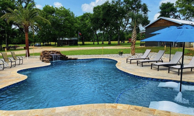 Best-rates for the Piney Woods cabin starts from $256 per night with includes Barbecue/Outdoor Cooking, Air Conditioner, TV, Kitchen, Bedding/Linens, Child Friendly, Internet, Pet Friendly, Pool, Balcony/Terrace, Security/Safety, Wellness Facilities, Laundry, Fireplace/Heating, Entertainment StayAndPlay offers fully equipped golf villas, golf hotels, golf resorts, luxury golf cabins, and exclusive golf retreats, making it easier than ever to find your perfect golf escape — ideal for families, peaceful getaways, or pet-friendly retreats with the whole crew.