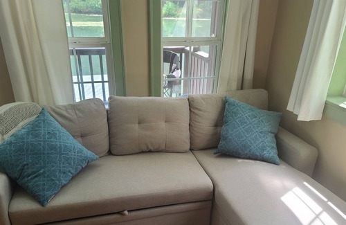 Find your happy place at our cabin on the pond. Relax and enjoy all that nature offers right out the front door on the deck. Want to explore? Callaway Gardens, FDR state park, and FDR's little white house are only a few of many area attractions. A well stocked kitchen, refreshing shower with luxurious towels, and a "please don't wake me" comfortable bed are only a few of things our guests love. The couch pulls out into a full bed for extra guests.