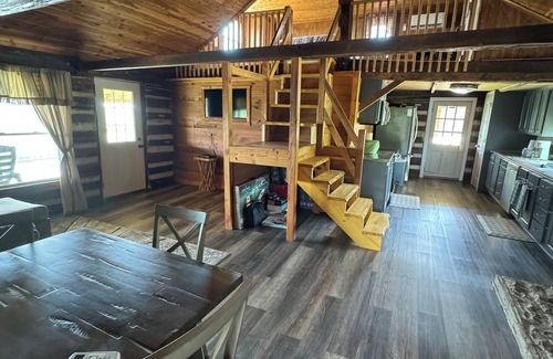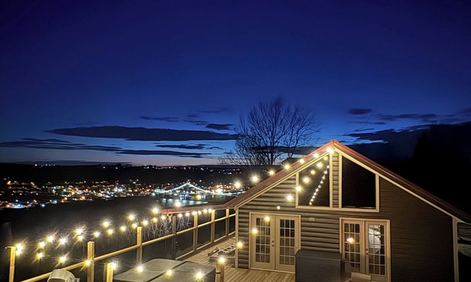 Enjoy this Great peaceful cabin getaway with a large yard for those outdoor activities, or sit out on the covered porch that overlooks the Ohio River as the boats and barges pass by. With this amazing view there is lots to see as you unwind and decompress from those difficult days. Inside this 1,632 sq.ft cabin you will find a fully equipped kitchen to fit all your cooking needs. One queen bed upstairs in the loft including a full bath. Along with another comfortable queen downstairs with a near by full bath. A large sectional with a sofa bed with extra pillows and blankets. A tv and dvd player with a few dvd’s and board games to enjoy on rainy days. Back outside on the open deck area you will find a bbq grill set up for propane or charcoal. Outdoor furniture with propane fire pit and a 5 person hot tub.