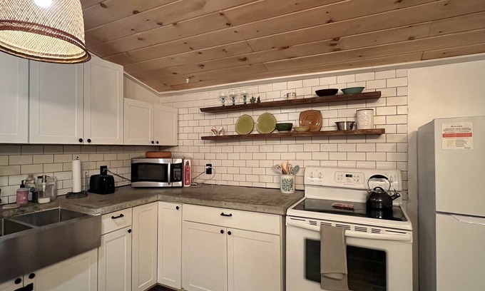 Feel refreshed when you stay in this gem. Small farmhouse, wooded area with tiny farm on property. Currently two chicken coops and one medium sized barn. Chicken coops are occupied with pet/egg laying chickens. Barn is empty, future may include goats. This small cottage/cabin, is surrounded by nature. You will possibly encounter the wild animals that call this area home. Nothing big or scary. Enjoy feeling secluded while also being 15/20 minutes from food and shopping. 5 minutes from reservoir. Enjoy the two kayaks included in back of house, to take to boat launch 5 minutes down the road. Perfect for bird watching, there are many different birds all around us.