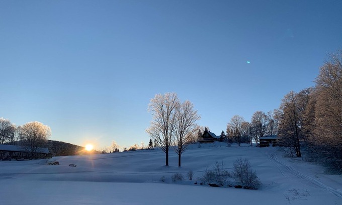 The pond is calling! Whether you come with a group of your best buddies, or for a romantic get-away, there's something for everyone! This is idyllic Vermont- perfect for equine trail riding (bring your own horse only), with limitless other activities: Hiking, biking, swimming, XC skiing, snowmobiling, sledding. Also ideal for relaxing, for those of you who are just looking to unwind in the serenity of the Bunkhouse and its remote surroundings. Come recharge in our comfortable cabin and get away from it all. The pond is perfect for swimming, lounging around, basking in summer’s glory and enjoying a campfire at night while listening to all the sounds of nature. You will definitely hear owls at night and often there are deer grazing in the field. The back deck is perfect for catching the sun rise over the pond while sipping coffee and/or enjoying a cocktail while listening to the birds chirp.