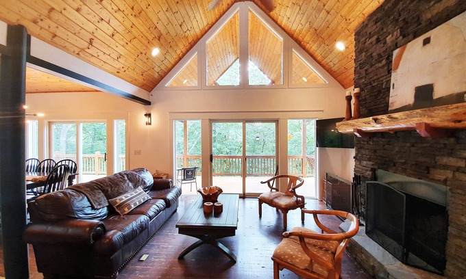 Welcome to your mountain home away from home! The house has a spacious two story deck nestled in a grove of mature trees providing winter views, fall foliage, and spring and summer solace.