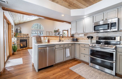 ♦ Kitchen: Cabin is well stocked for all meals! Our coffee maker uses k-cups and ground coffee. We provide coffee and tea, honey, sugar, oil, spices, and more. If there is anything missing in kitchen- please let us know so we can stock it for you! Home has filtered well water.