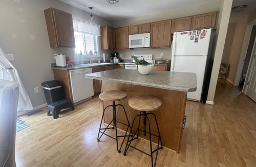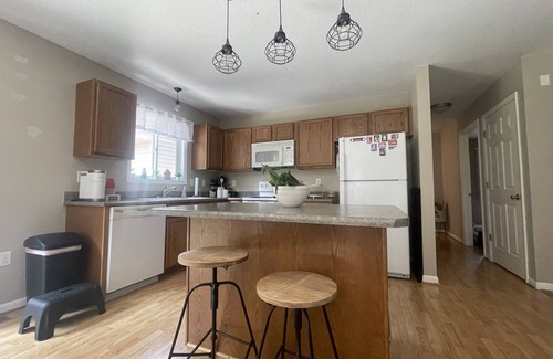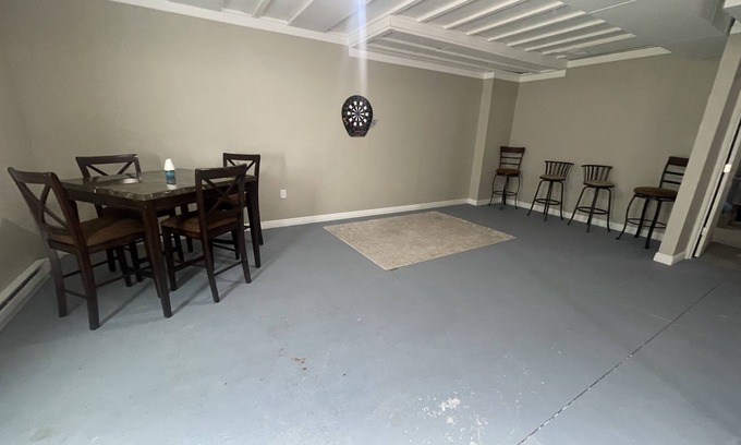 The home offers a large entry way. Heading down the hall you'll come to the full bathroom. One bedroom with a queen size bed is located on the first floor. Open floor plan allows you to cook for the family while enjoying each other's company. Upstairs there is a family room and second bedroom with 3 full beds. The walkout basement offers another family room with a tv and darts.