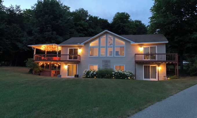 You'll have plenty of yard space for your favorite summer games and bonfires on the 3 acre parcel. Create your perfect up-north memories singing campfire songs and making s'mores around the firepit. This property is nestled among the hilltop trees and provides a night sky perfect for stargazing. Or, take a nice soak in the hot tub on those chilly northern evenings. During the day you can take advantage of the hilltop and coast down into town to shop Frankfort’s Main Street or stop to sip a cold beer from the local brewery. Don’t forget your time away is the perfect opportunity to relax with a good book as you soak up the sun at the beach 1.1 miles away. Create the perfect ending to your day as you grab ice cream from one of our local shops and stroll down Main Street to the beach for a spectacular sunset on Lake Michigan.