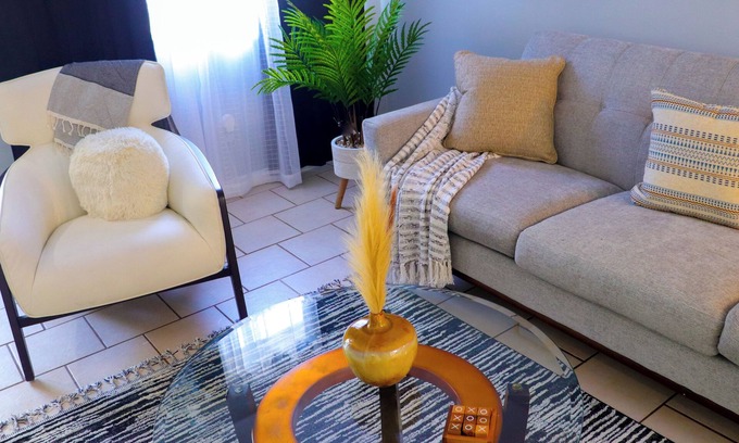 Kick back and relax in this calm, stylish space! Nestled just minutes away from the pristine sands and serene waves, our charming Townhouse offers the perfect escape for beach lovers!