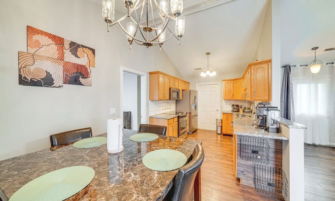 Experience the charm of Jeffersonville when you stay at this 2-bedroom, 2-bath vacation rental house. This cozy abode is ideally suited for a small group, boasting a private backyard, a fully equipped kitchen, and a workspace. Admire local history at the Louisville Slugger Museum & Factory, or enjoy nature at the Falls of The Ohio State Park! After days filled with adventure, unwind by preparing a tasty meal on the grill for everyone or cozying up with your loved ones!