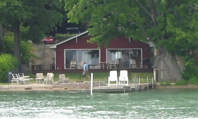 There is a patio and 'beach sandbox' (for sunbathing/Bon Fires) out by the lake. Room for volleyball between the house and lake. Sandy bottom out chest deep; docking for 3 boats. Home is NOT wheel chair accessible. Turn-key furnished (excluding "consumables" (including paper goods), including linens, BBQ, etc. Several golf courses within 15 minutes (2 within 2 miles).