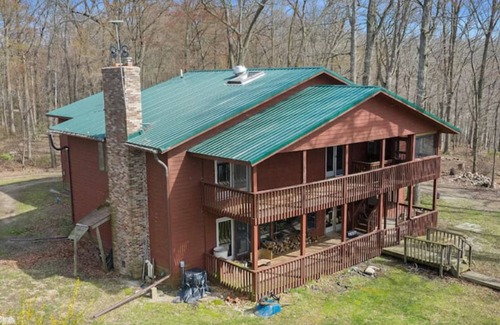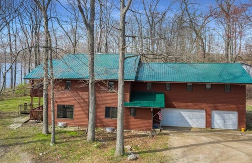 Nestled amidst towering trees, the lake house is a tranquil oasis by a beautiful lake. Enjoy the mile long scenic drive to the home. It features two cozy fireplaces, sleeps 14, and offers pedal boats for leisurely rides. Fishing enthusiasts will delight in the abundant waters. Escape to this serene haven in the woods for a rejuvenating experience immersed in nature's serenity.