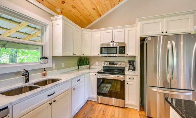 Enjoy Kentucky’s spectacular natural beauty in comfort and style at this 3-bedroom, 2-bathroom vacation rental! Surrounded by forest views yet just a short drive from marinas, hikes, and golf courses, this Leitchfield cabin has it all! When you're not busy exploring Mammoth Cave National Park or spending a day on the water at Nolin River Lake, head back home to relax in the hot tub and gather around the fire pit with loved ones. This stylish abode also features a fireplace and a furnished deck!