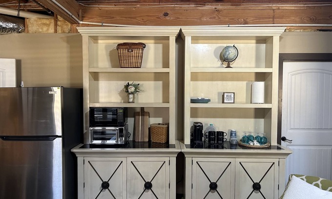 Enjoy this beautiful guest home at Peaceful Meadows! This space includes a large king bedroom, rec/tv room with plenty of places to relax, a kitchenette with dinning room and a serene view of the lake and stables on the property. This place is the perfect retreat to unwind and relax just minutes from Birmingham!
