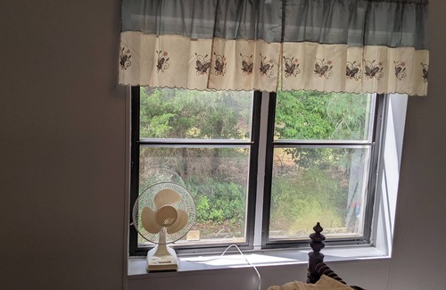 Park your vehicle near entrance to home and step onto the large (16' x 40') deck with entry door and sliding glass door. Enter into mud room with pantry cabinet and stacked washer/dryer and coat rack. Access to bathroom with large tub/shower, sink and toilet. Access to Primary BR with view of water includes an antique bed (full) with bedside tables and lamps, chest of drawers, large closet and satellite TV . Guest BR is at other end of trailer with Queen bed with bedside tables and dresser with double window looking towards wooded area. Living Room has a large and small couch with 44" Roku TV. Eating bar with stools at kitchen counter. Kitchen has new refrigerator/freezer (no ice maker), full stove with hood. Fully stocked with essential appliances (Toaster Oven, Coffee maker, Coffee grinder, Blender and Bullet, George Foreman grill), most condiments, herbs and spices. Refrigerator will include water jug, as the well water in the area is not the best tasting. No dishwasher. Newly renovated glass enclosed porch overlooking back (front?) yard with expansive views of creek. Includes a sofa with pullout bed, glass-top table with 4 chairs, wrought iron couch, rocker, wicker chest and armoire with 33" Roku TV. This room is the place to be. Glass door leads to small deck with table and 4 chairs, steps to yard and pier and charcoal grill.